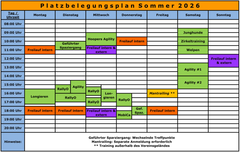 * Die Zeiten für Jagdersatztraining sowie Pocketdummy werden