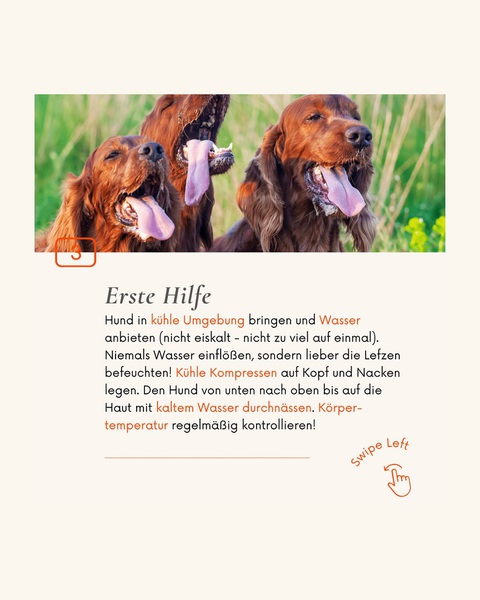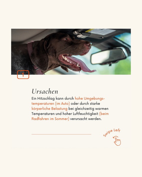 Achtung, Lebensgefahr!Schon ein Spaziergang in der prallen Sonne oder ein kurzer Aufenthalt im heißen Auto kann zur Überhitzung führen!